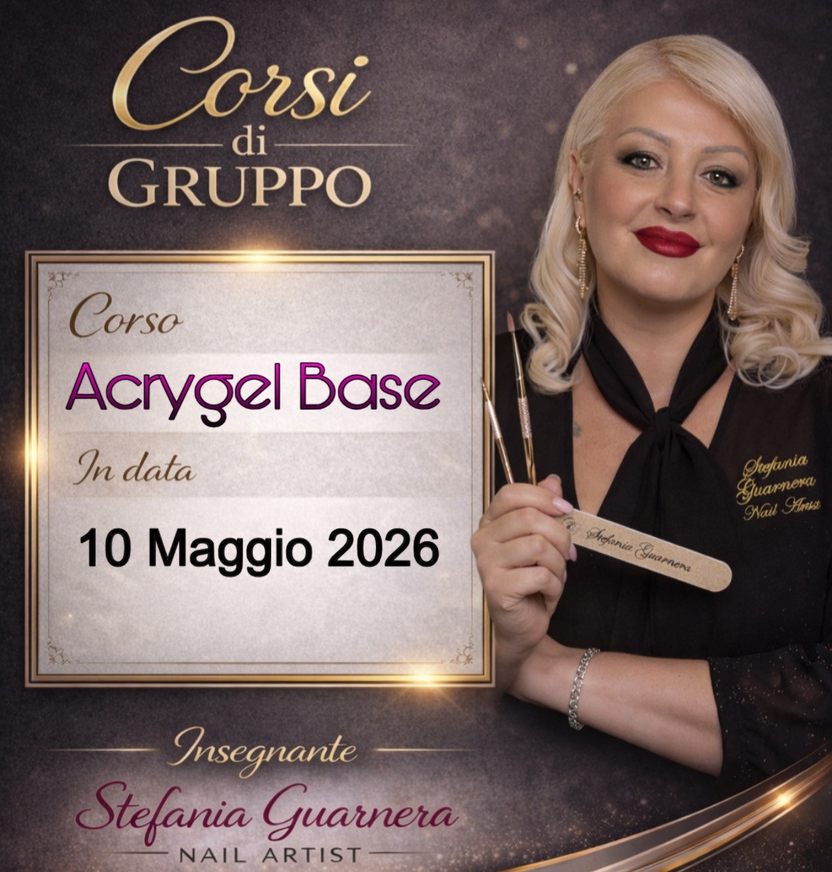 Ognuna dovrà fornirsi del materiale richiesto dalla Master:  fresa, punte, strumenti per manicure, lime, preparatori di adesione, acrygel vari, lucido finale, nailform, pennelli vari (il resto del materiale lo metterà a disposizione là Master )