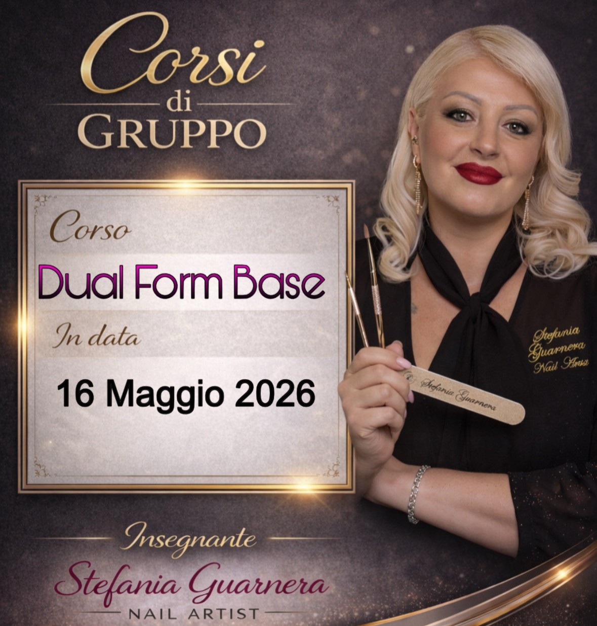 E’ un corso dove si studierà questa fantastica tecnica innovativa di Ricostruzione Unghie. Dual FORM in tutte le sue sfaccettature, rivolto a chi vuole imparare questo metodo di allungamento o copertura unghie naturali in fase di refill.